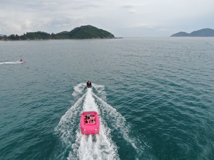 游客在海南万宁神州半岛体验海上游玩项目(2025年1月15日摄)。新华社发
